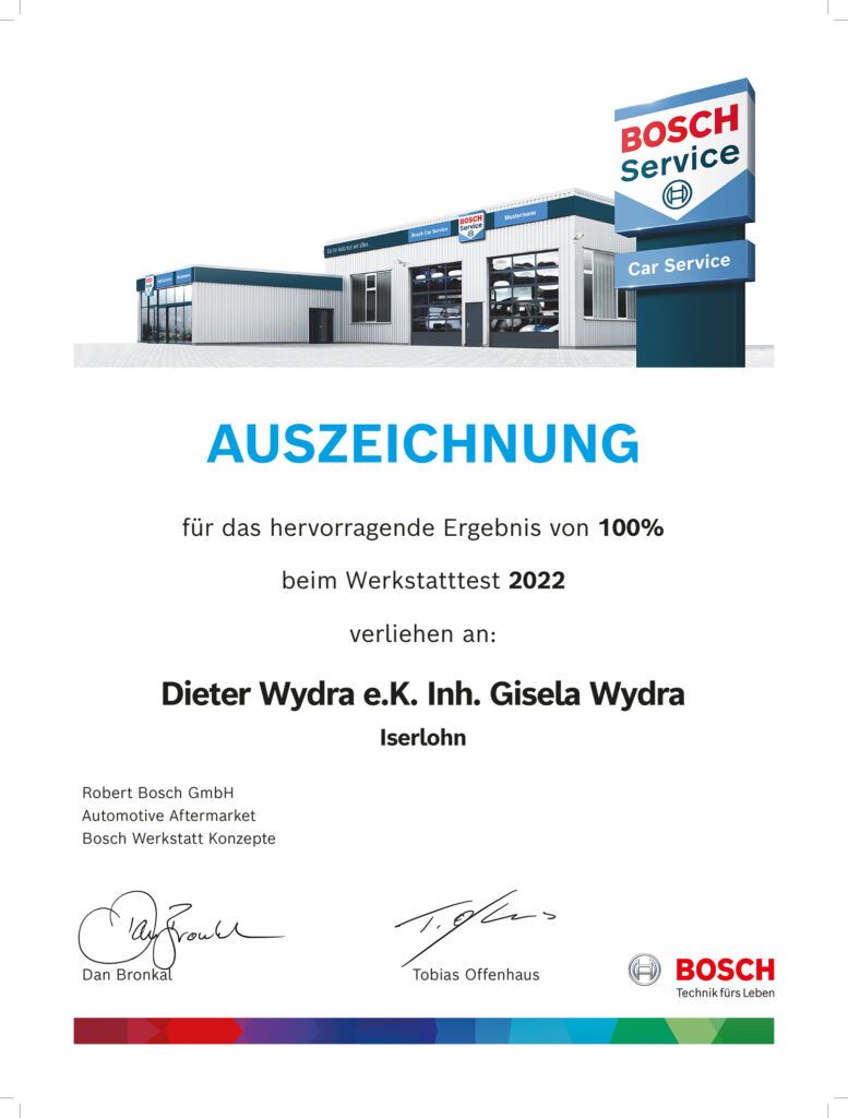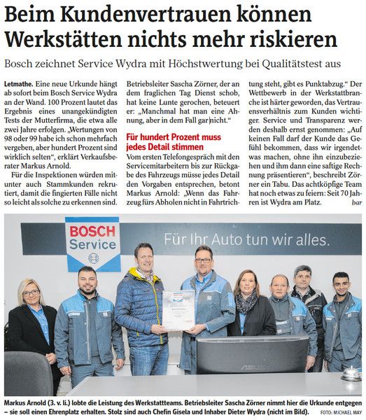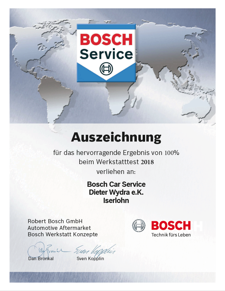 14. Februar 2019 - Bosch zeichnet Service Wydra mit Höchstwertung bei Qualitätstest aus.