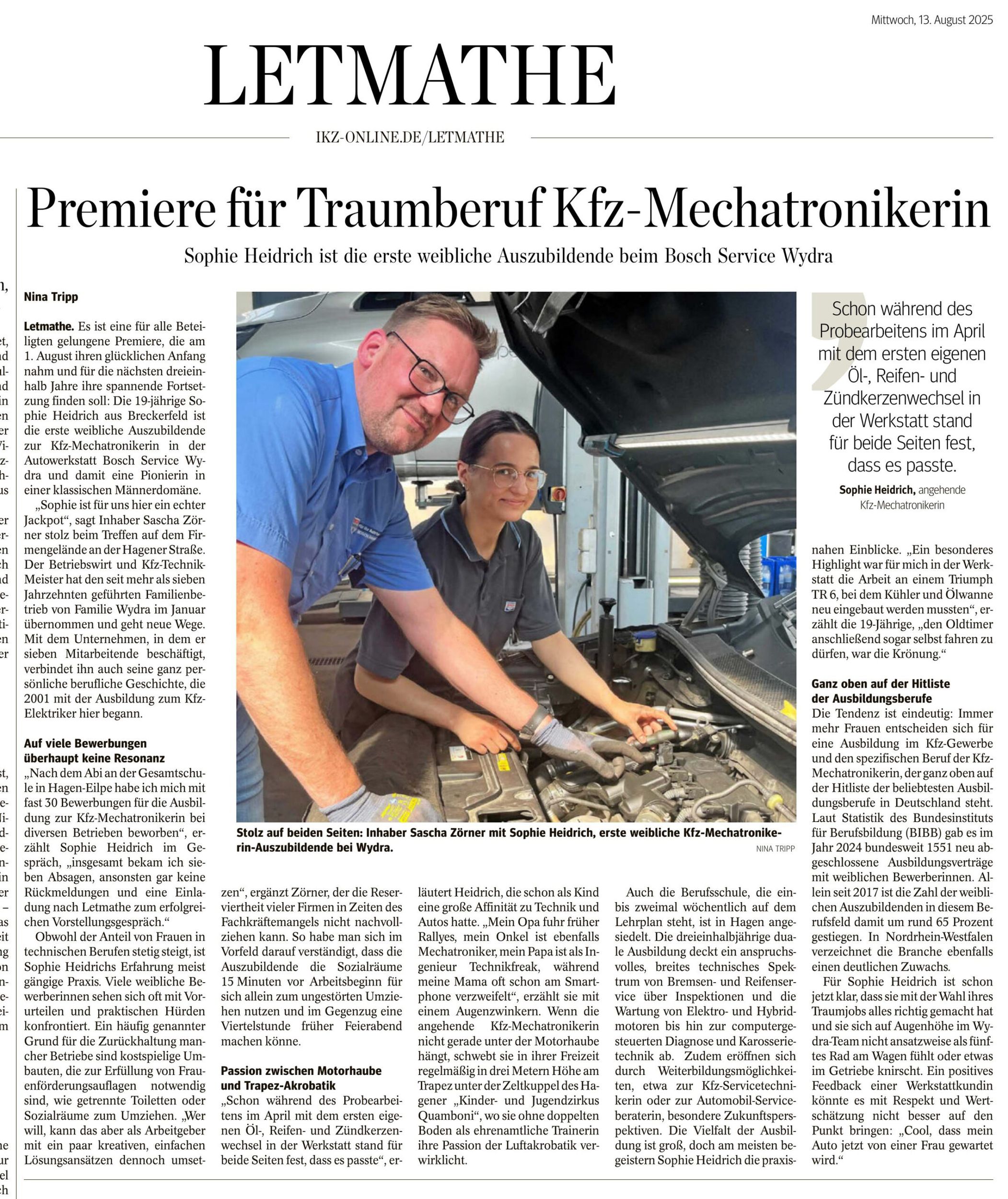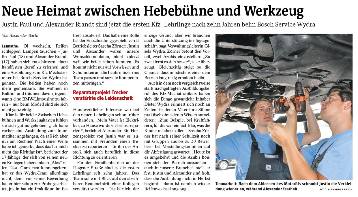 05. August 2019 - Justin Paul und Alexander Brandt sind jetzt die ersten Kfz-Lehrlinge nach zehn Jahren beim Bosch Service Wydra